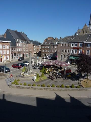 AUBEL : Très belle situation - belle vue sur la place Antoine Ernst Appartement en duplex situé au 2ème étage d'un immeuble avec grande terrasse arrière : 2 chambres, buanderie : +/- 111 m2 + cave. Chauffage électrique – compteurs séparés eau-électricité (Rénové il y a +/-12 ans)