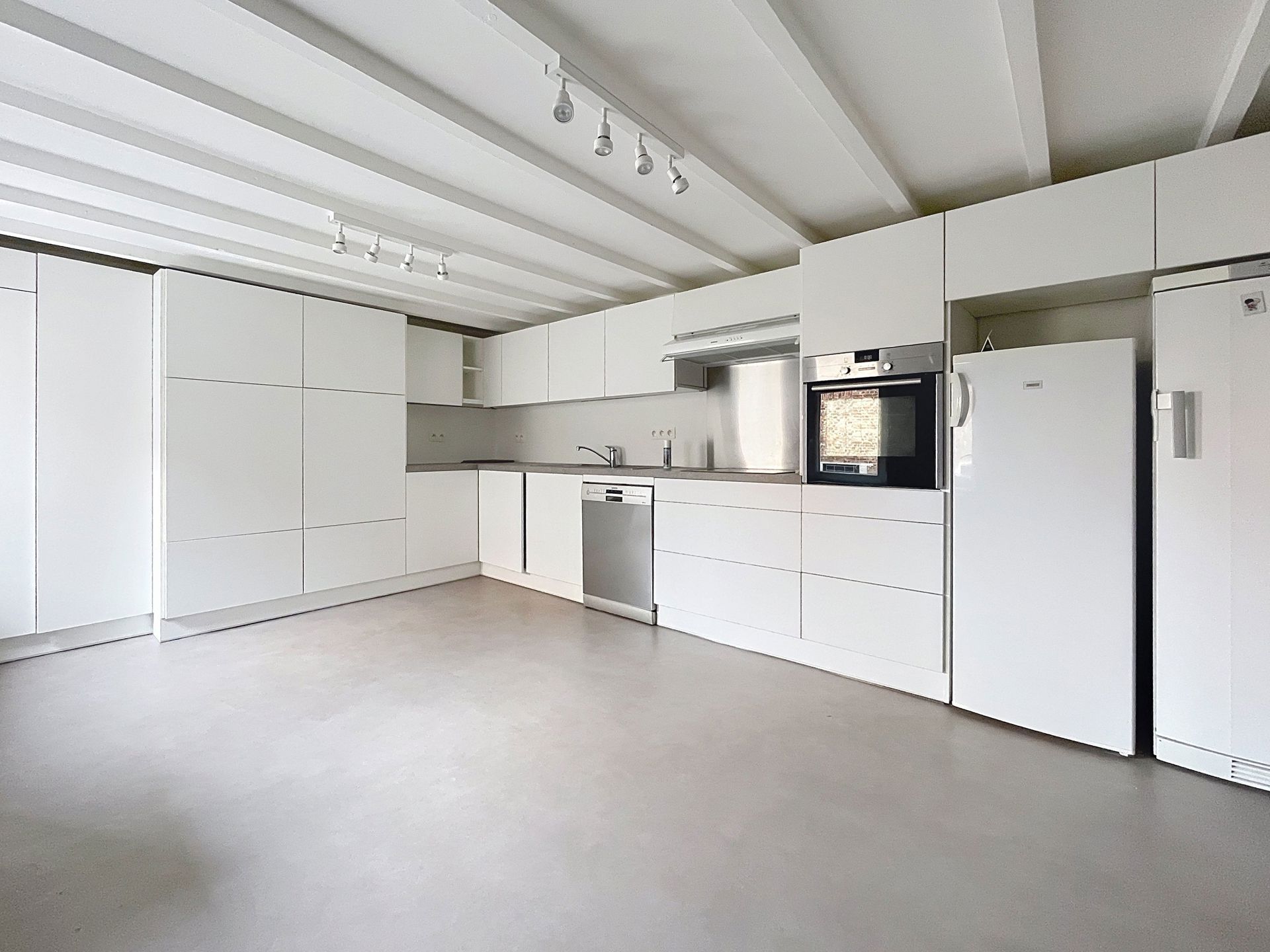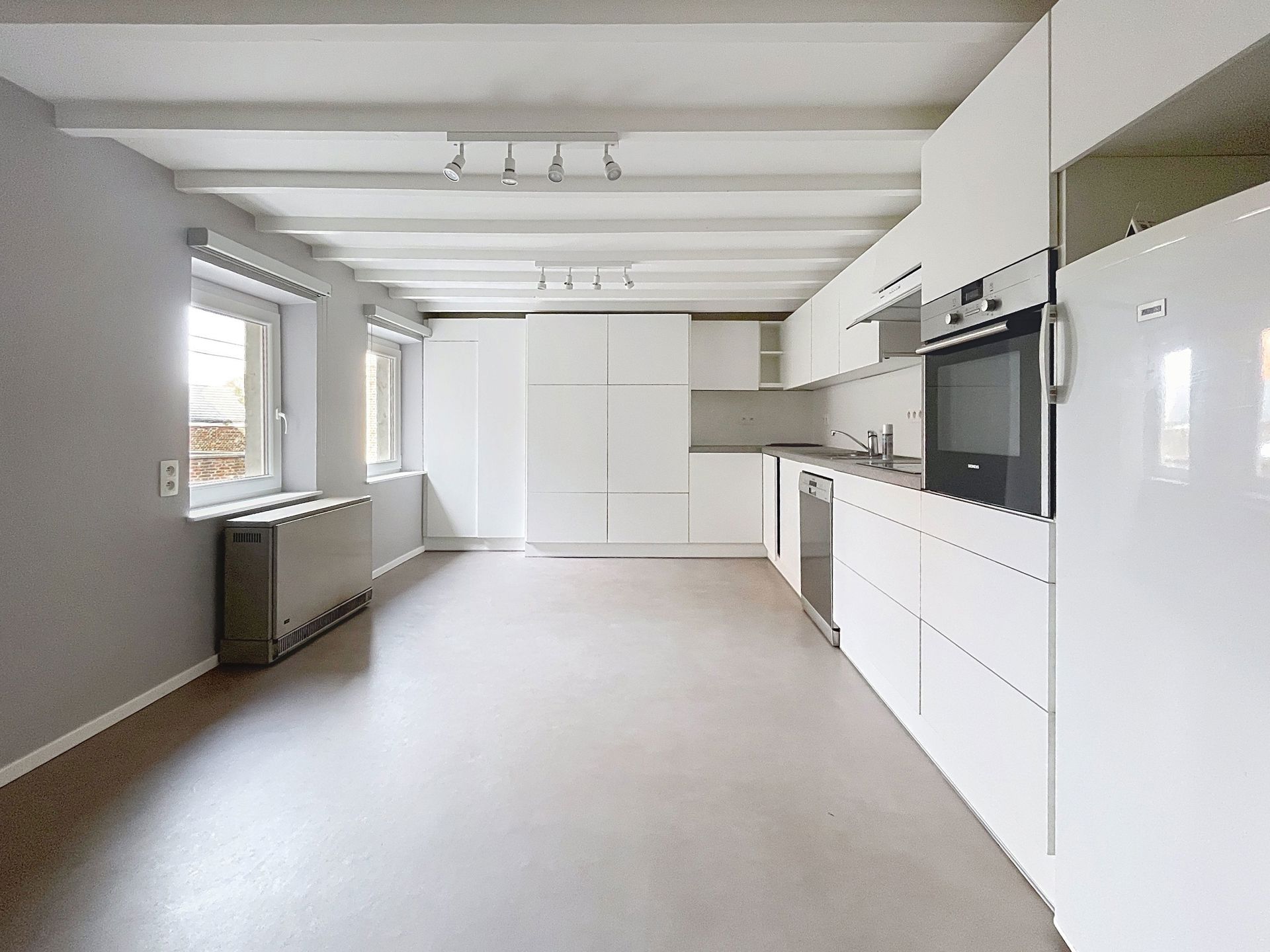 Aubel | Place Antoine Ernst 3 | triplex situé en plein centre d'Aubel. Composition : Hall d'entrée, salon et salle à manger, cuisine entièrement équipée + machine à laver et sèche linge. Au 2ème étage: une chambre à coucher, un bureau ou une 2ème chambre à coucher et une salle de bains (baignoire, wc). Au dernier étage : une grande chambre avec un dressing. Aspects techniques : chauffage à accumulation électrique, poêle à pellets, chassis pvc et bois double vitrage. Loyer : 760€/mois. Peb D : 309kWh/m².an - 60.726kWh/an. Renseignements via www.bonim.be - info@bonim.be - 087/46.05.44.