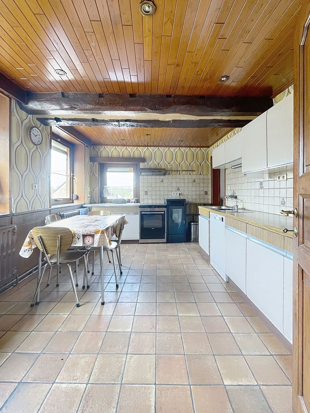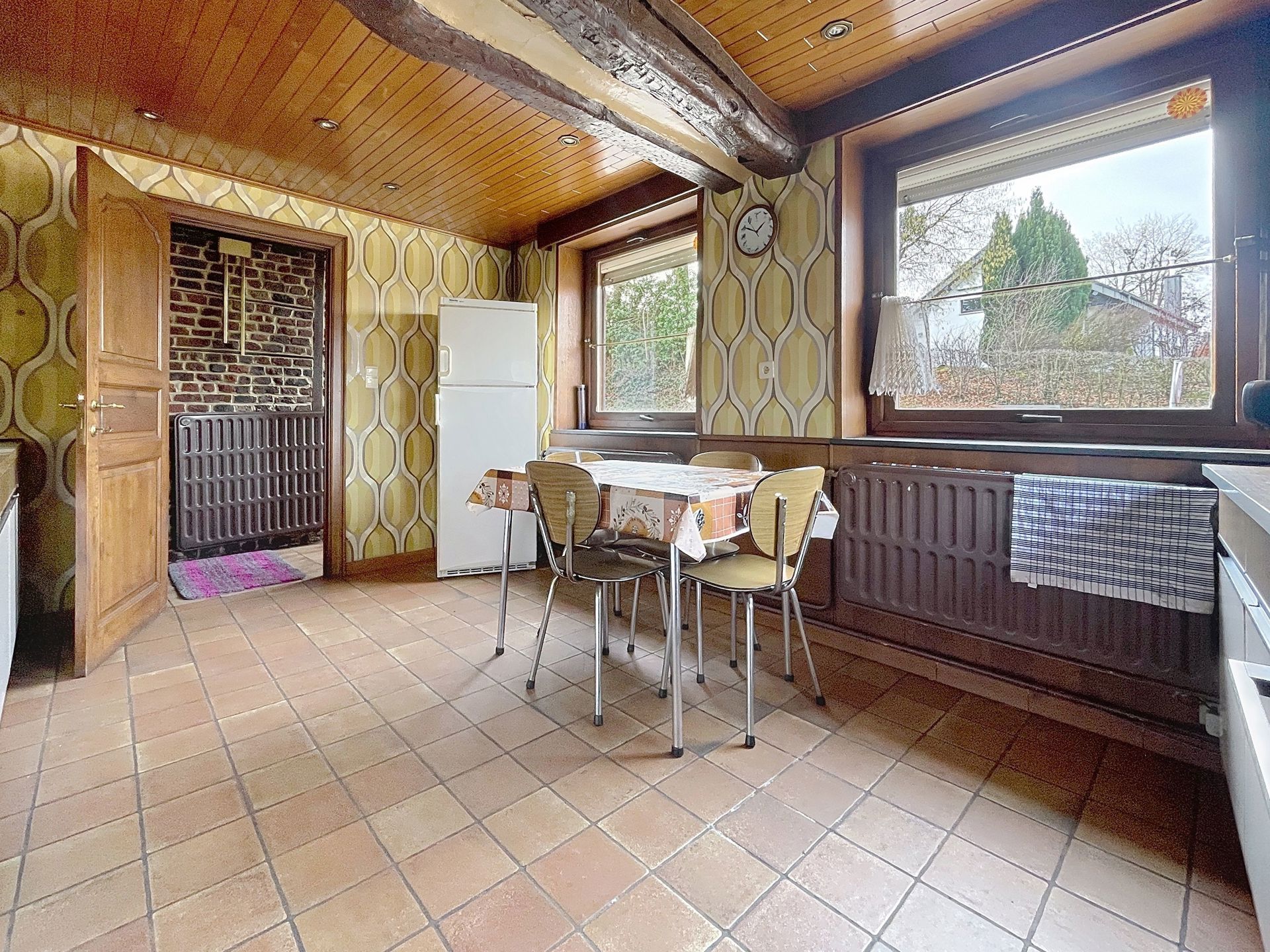 Thimister-Clermont | Route d'Aubel 50 | Maison 3 chambres avec jardin et garage. Elle se compose au rez-de-chaussée : un hall d'entrée, salon, cuisine équipée et salle à manger avec un poêle à pellets, salle de bains avec WC, véranda, garage avec porte motorisée et deux pièces de stockage. Au 1er étage : 3 chambres, un bureau et un WC séparé. Au dernier étage : un grand grenier. Autres : un jardin, plusieurs emplacements de parking extérieur, un garage avec porte motorisée. Aspects techniques : chauffage central au mazout, poêle à pellets, chassis bois double vitrage, panneaux photovoltaiques. PEB E - 414 kWh/m²/an - 73.363 kWh/an - n°20260206023666 . Loyer hors charges : 800€/mois. Renseignements via www.bonim.be - info@bonim.be - 087/46.05.44.